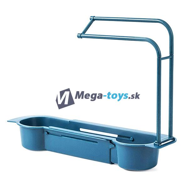 Organizér na umývacie prostriedky, ktorý strčíte rovno do drezu. Jeho prednosťou je, že je teleskopický, takže ho je možné nastaviť na akúkoľvek dĺžku. Prispôsobí sa tak takmer každému drezu. Odkladaciu poličku využijete na umývacie prostriedky, hubky či handričky. Súčasťou je práve aj stojanček na handričky či utierky, ktoré sa tak udržujú večne v suchu.