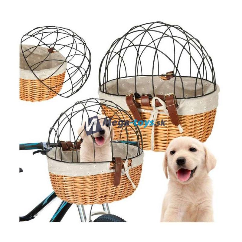 Prútený košík na bicykel na prepravu psa alebo mačky je skvelý spôsob, ako vziať svojho štvornohého priateľa na prechádzku. Kôš je vyrobený z prútia a má kovovú mriežku , ktorá udrží vášho domáceho miláčika počas jazdy v bezpečí. Vnútro košíka je vystlané kvetinovou látkou. Pripevňuje sa k riadidlám bicykla pomocou popruhov. Po odstránení kovovej mriežky možno košík používať ako klasický košík na bicykel - praktický a štýlový.