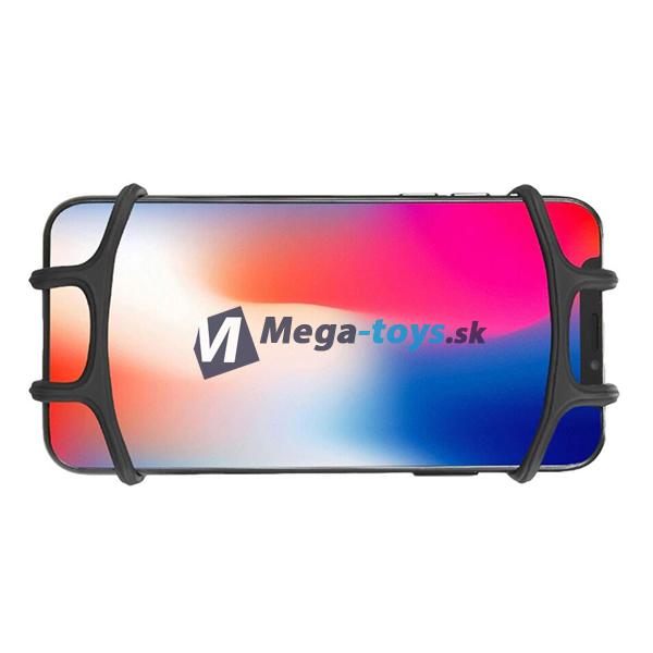 Odnímateľný univerzálny silikónový držiak mobilného telefónu o veľkosti 4 - 6,5" určený pre uchytenie na riadidlá bicykla alebo motocykla.