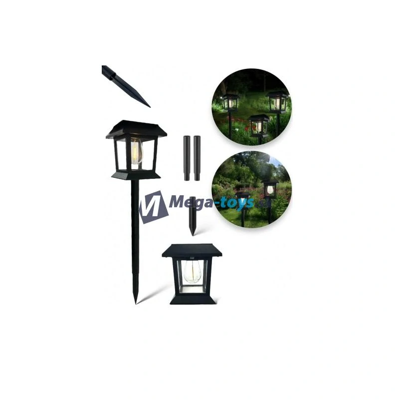 Solárna záhradná lampa na zapichnutie do zeme s teplým bielym svetlom.